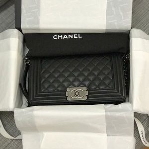 NWT Chanel medium boy bag. Black lamb skin with receipt.