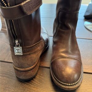 Chanel brown leather moto boot. Excellent condition. Size 39.5