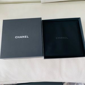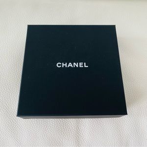 Chanel necklace box with velvet sleeve, ribbon, camellia, and booklet. Unused. It’s their regular size necklace box, not the small one. No jewelry included. Ribbon won’t be tied since I opened it, but will be included with the box. SeB114