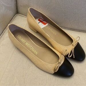 Chanel or Stuart Weitzman? STUART WEITZMAN Cap Toe Raffia Bow Ballet Flats 6.5
