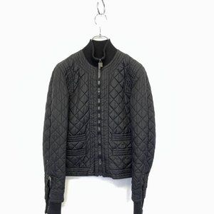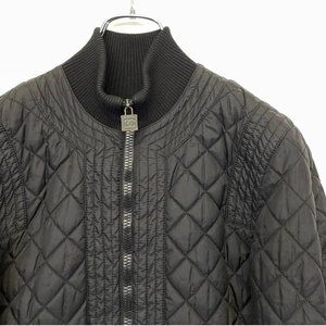 Chanel Fall-Winter jacket comes in a black quilted polyamide blend featuring a high collar, ribbed hem, Slit pockets, zipped sleeves, logo hardware and a full zip up closure. Chic cut and elegant stitching with beautiful branded Chanel logo details. Made in Italy. Like NEW.