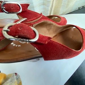 Chanel clogs platforms red suede strap with metal buckle- adjustable strap.