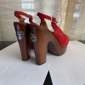 Chanel red suede strap clogs ankle strap brown platforms size 36.5 ankle strap