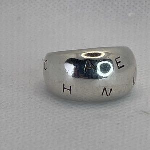 Authentic Chanel sterling silver ring very rare and very beautiful . Some scratches from wear a real statement piece . Rare piece channel didn’t make sterling silver . Size is 7 please ask question before buying thank you