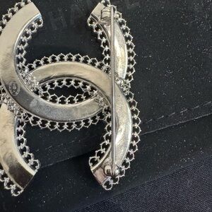 I purchased the stunning silver brooch at Selfridges in London several years ago. I only used it once so I'm selling it at a very good price. This is a beautiful silver brooch with a hammered surface. The outside is adorned with beautiful detail, and I do not see any flaws in this item. It comes with a beautiful pouch and makes for a gorgeous gift for yourself or for someone else who adores Chanel!