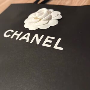 Chanel small shopping bag tote and ribbon with flower emblem/3d design with the