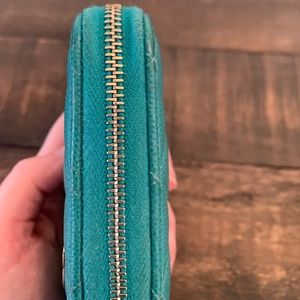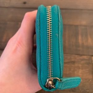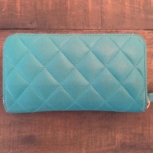 Chanel small zip around wallet- 17c turquoise caviar leather