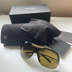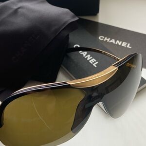 Authentic vintage Chanel sunglasses 6007 brown and gold. Like new condition. No scratches to the lens. Brown lens. Come with Chanel box, case, wipe lenses, booklet. Made in Italy.