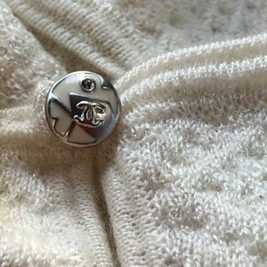 13 across, 23 from shoulder to hem. The Chanel button has a small Swarovski crystal in it. Cotton/silk. No hole/rips or snags. Size 42 which is a medium in U.S.A.