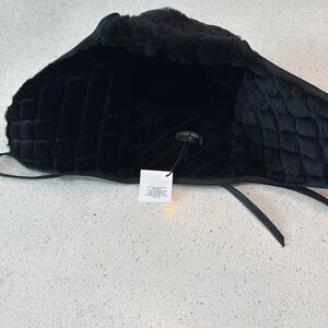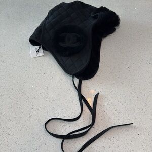 Chanel Black Quilted Shearling Fur CC Logo Chapka Hat