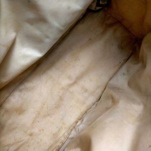 Bag has been used often and has average to heavy wear. The bag is really strong so can definitely still be used but has soiling, stains, etc. Looks great from a few feet away, but can see the wear up close. Cosmetic wear to handles. Very strong and durable. All snaps and zips working.Bag looks nice and quality from normal distance.