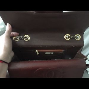 Is it brown? Maroon? And what color is the chain/hardware? Thanks!