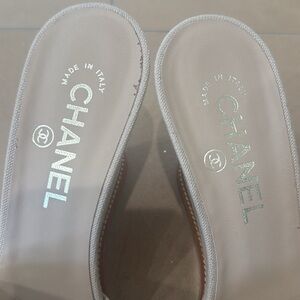 Chanel women’s beige, tweed clogs/mules. Size 39, excellent condition