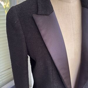 Absolutely beautiful Chanel coat with silk lining,French size 40 measuring seam to seam across the shoulders is 16, pit to pit is 18 from the top of the collar in the back to the bottom is 34 from the shoulder seam to the bottom of the sleeve is 23 has two front pockets That are also silk lined