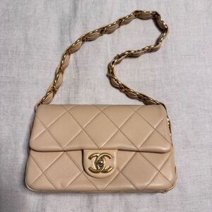 Chanel 24K Small Flap Bag Beige Quilted with CC Strap