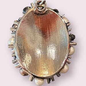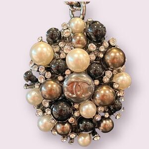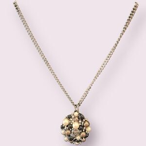Pre-Owned CHANEL necklace pendant CC mark rhinestone pearl black white silver