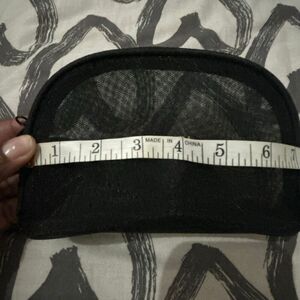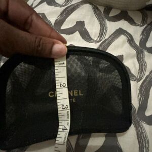 Chanel Beauty Women's Zip Around Crescent Cosmetic Bag Black Mesh Travel Pouch
