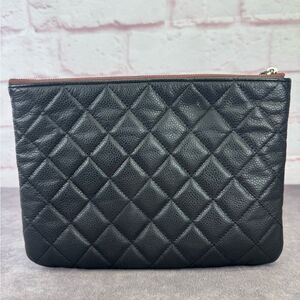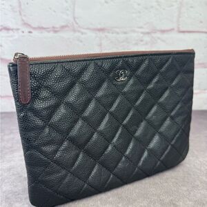 Authentic Chanel Caviar Black Classic Quilted O Case Leather Pouch
