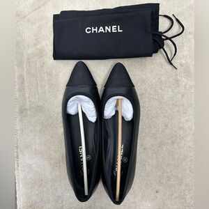 Chanel Black Lambskin Leather Interlocking CC Pointed Toe Chain Loafer Size 39.5