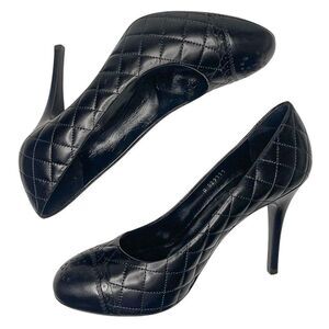 Tags: Chanel quilted leather pumps, Chanel CC logo heels, Chanel black leather shoes, Chanel EU 39 heels, Chanel perforated logo pumps, Chanel black round toe heels, Chanel designer heels, Chanel made in Italy pumps, Chanel size 39 shoes, Chanel black quilted heels