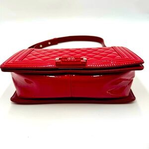 Chanel Boy Red Plexiglass Quilted Matelasse Patent Leather Med Shoulder Bag Ex++