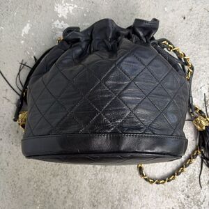 This is a small leather bag and is in great condition bag. I had one of the drawstrings repaired and you can’t tell. Please look at the pictures no longer has the authentication code in it but since it will go through Poshmark, they will authenticate. Measures 7.5 x 8 x 5.5 chain dropis 18.