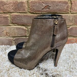 Chanel Gold Metallic Cap Toe Ankle Bootie