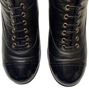Chanel Interlocking C Lace Up Pearl Calfskin Leather Ankle Boot EU 37.5 US 6.5-7