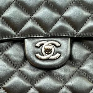 Chanel Lambskin Quilted Front Flap Tote Handbag Black All Inclusive