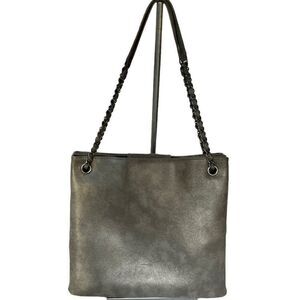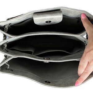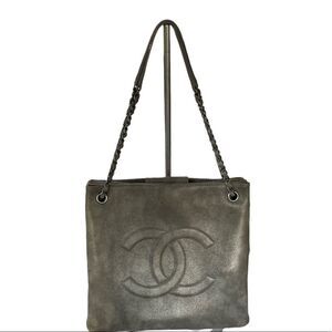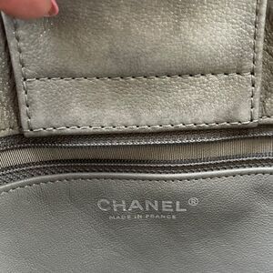 Chanel Large Iridescent Accordion Shopper Tote Handbag Calfskin Logo Silver