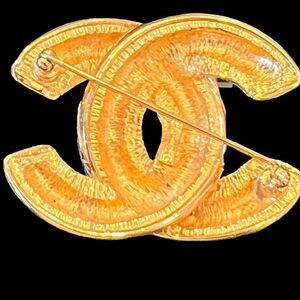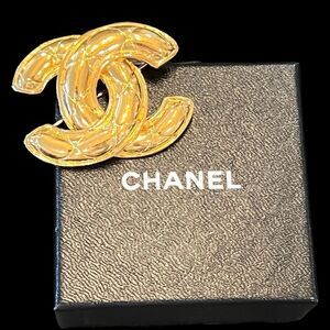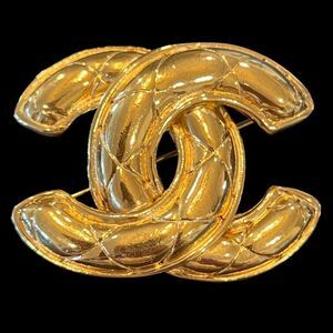 Chanel’s iconic Matelasse CC mark brooch pin.