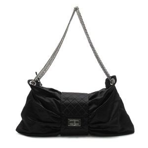 Chanel Shoulder Bag Ribbon Chain Fabric Black