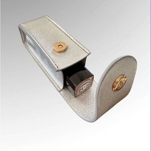 Elegant Chanel lipstick case in a sleek silver finish. Perfect for stylish storage and easy access.