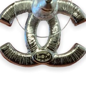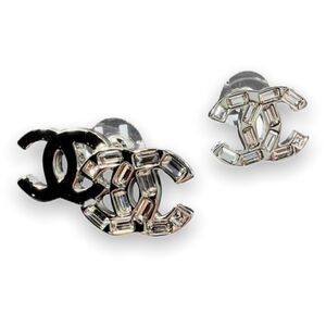 100% authentic Large Chanel CC Logo Crystals with silver hardware stud earrings