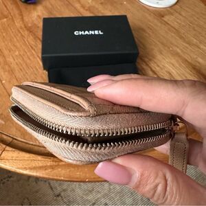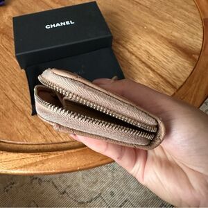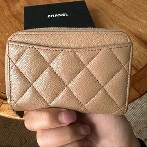 Elegant Chanel wallet in a chic tan color. Features a quilted leather design with iconic branding. Perfect for adding a touch of luxury to your everyday essentials.