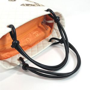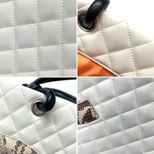 Chanel Tote Bag Cambon Line Medium Lambskin Python Leather Logo White