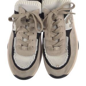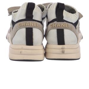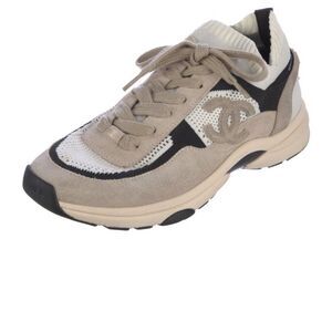 Chic Chanel sneakers with a sleek design. Features a blend of beige and black tones. Ideal for everyday style.
