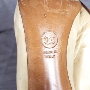 Chanel Vintage Cap Toe Tan Black Embossed Leather High Heel Pumps Size 9