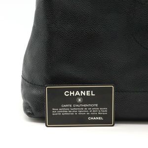 Chanel Wood Chain Shoulder Bag Shawl Caviar Skin Leather Black