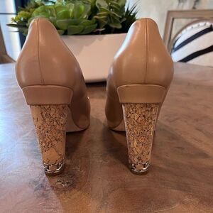 Chanel nude peep toe pump, size 40, US size 10, great condition, no box or dust bag, cork heel with silver chain detail.
