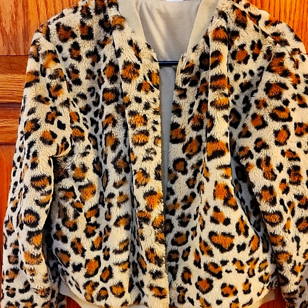 let you're little girls inner fashionista shine. this jacket in leopard print is fuzzy and cozy. can be dressed up and just worn everyday. in good condition and the zipper is smooth going up and down. comes from a smoke free, pet friendly home. feel free to ask questions