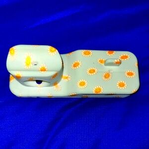 Silicone 3-in-1 charging stand for Apple watch and phone.