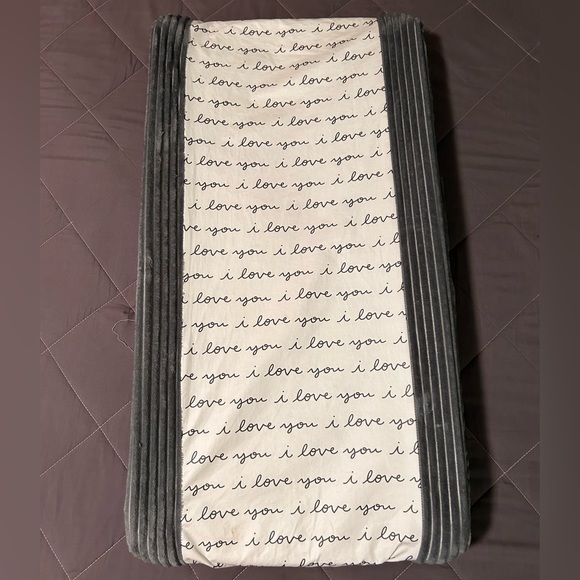 Changing table pad with sheet . Has clicks on the bottom to secure to table with rubber stoppers to ensure security.