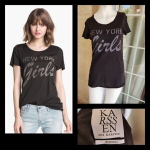 - Faded-black cotton and modal-blend - Faded-white 'New York Girls' print, intentionally unfinished hems - Slips on