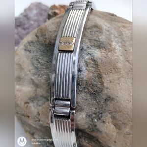 Channel Set Natural Diamond 10K Solid Gold Stainless Steel Panel Link Bracelet