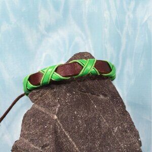 Channing Mens Criss Cross Sliding Tie Boho Green Leather Bracelet Gift Packaged
