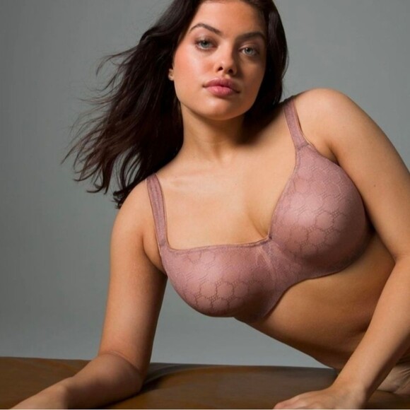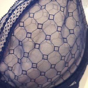Chantelle Bra Geo Lace Balconette Bra 32 C, Navy Lace Light Padding.
