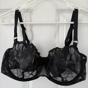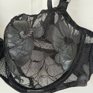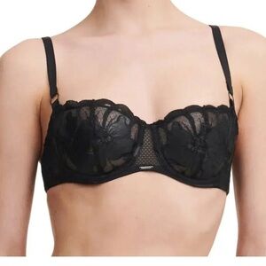 Chantelle Fleurs Signature Black Faux Leather Demi Bra Size 38C