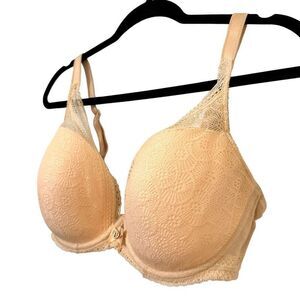 Chantelle Lace Overlay Padded Full Coverage Push-up T-shirt Bra Nude Size 34DDDD