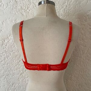Chantelle Merci Demi Bra 32DD Orange /Red Sheer Lace Floral Underwire Worn 1x